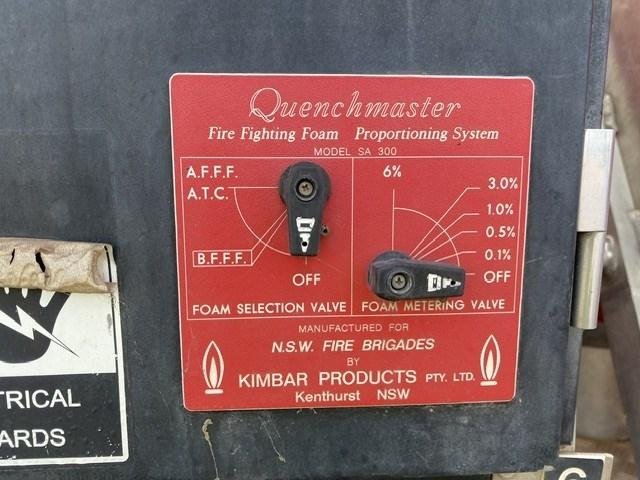 Fitted with firefigher unit, tank 2400L, GAAM pump, Hatz diesel engine, Quenchmaster fire fighting foam system, 2 side hose & reels, side storage units with roller doors, overhead storage, includes some hoses, 395 pump hours showing, Length: Approx 8000 x 2500 x 3500mm(H)